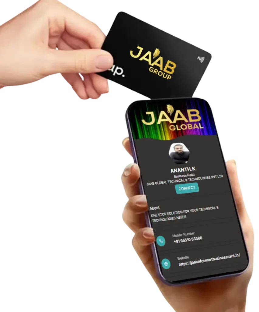 An NFC Business card is a contactless smart card embedded with a small chip and antenna that allows it to communicate wirelessly with compatible All Mobile devices.