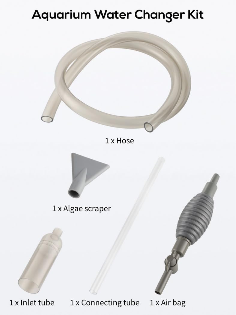 Color: clear Material: plastic Size: 67''L Package Includes: 1 x aquarium vacuum cleaner 1 x algae scraper Note: - Please refer to the measurement. Tiny measuring error is allowable in normal range. - There might be a little color difference due to the monitor, camera or other factors, please refer to the physical item.