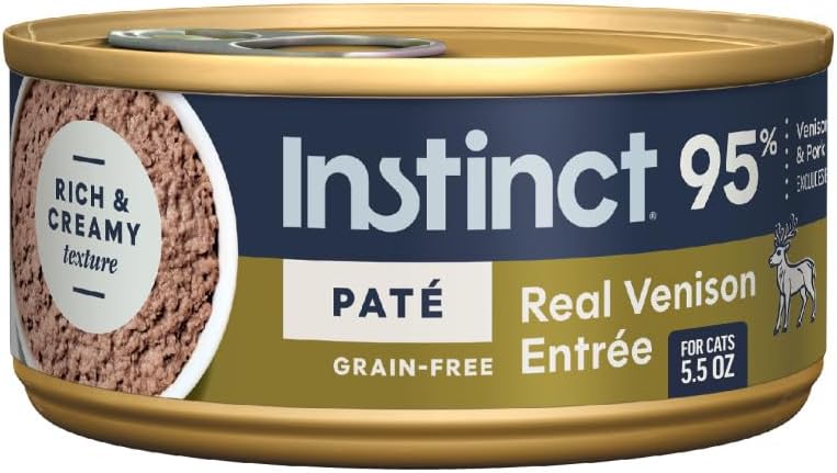 Instinct Original Grain-Free Pate Canned Cat Food with Real Rabbit is features farm-raised rabbit as the first ingredient, delivering 95% animal protein for strong, lean muscles and 5% vegetables, fruits, and other wholesome ingredients. The smooth, pate cat food texture provides a delicious, savory flavor cats love, making mealtime a satisfying experience. This grain free wet cat food is crafted to meet your cat’s nutritional needs without fillers or artificial ingredients. Made without grain, potato, corn, wheat, soy, artificial colors or preservatives, this healthy cat food delivers clean, high-quality nutrition cats can thrive on. Inspired by raw cat food, these wet food cat cans feature real, minimally processed ingredients to create complete and balanced cat food pate for kittens, adults, and seniors alike. As part of Instinct cat food, we believe in the power of real food to help pets live healthy, active lives. Proudly crafted in the USA with the finest ingredients from around the world, this soft cat food supports overall well-being and clean, natural nutrition. For added variety, explore other Instinct recipes like Raw Boost kibble and freeze-dried raw mixers.