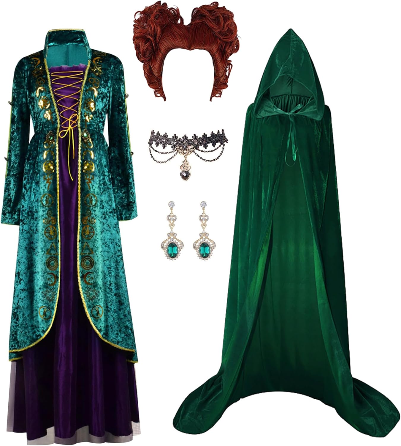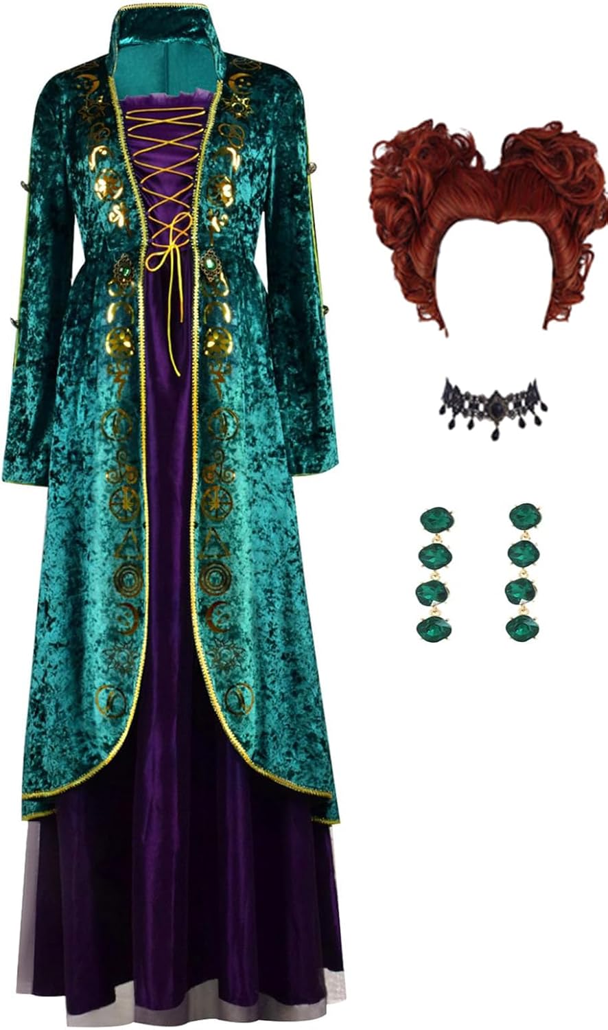 Sanderson Sister Winifred Mary Cosplay Dress Cape Robe Women Sarah Costume Dress Wig for Halloween Uniform This set is a one-to-one reproduction of the protagonist's style in the movie. Put it on and become your own star! Made of durable and breathable materials. The clothes are durable, neither loose nor shrunken, and can withstand multiple wear and tear from all sides. The clothes offer a smooth and comfortable fit, making them suitable for all seasons. Due to the different measuring tools used, there may be an error of 1-2cm. You can choose the size according to your own situation.