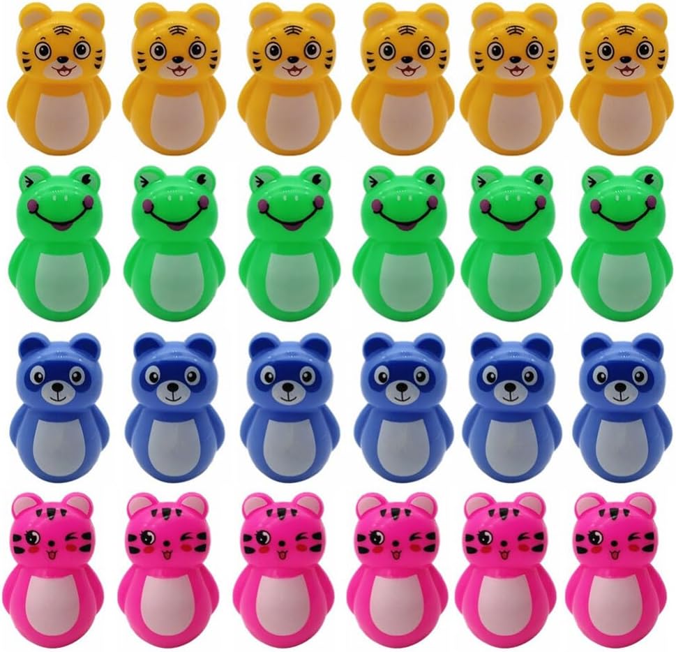 24PCS Poly Baby Tumbler Mini Animal Tumbler Panda Poly Baby Weeble Wobble Bear Tummy Time Rock Tumbler Egg Shakers Montessori Balancing Tumbler for Baby Material:ABS Size:4.00X3.00X3.00cm / 1.57X1.18X1.18in [Promote sensory development] - Mini -poly are made of ABS plastic material with a safety layer on the surface, smooth surface, and bear-shaped design. Random color, the mini tumbler is brightly colored, which can promote 's sensory development. Mini tumbler feel comfortable, the color is very bright, and the decorative effect is good. [Interactive play ] - Mini - keep standing forever and won't fall down, which can entertain kids. The height of each tumbler is 4cm. Various bear tumblers have big eyes printed on the surface, which can guide to interact with the outside world when playing games. [Toddle educational ] - Fun -poly are developing hand-eye coordination, logical thinking, and creativity. Educational , suitable for children to develop their creativity, memory and imagination. [Interactive weeble wobble ] - Parents can also play this with their to enhance parent- relationship. The rocking is well polished and won't hurt your baby's hands when using it. [Multi-purpose -poly]- Comes in a total of 24 mini tumblers that can be used as a kids game supplement, math counting tool, and as our desk .